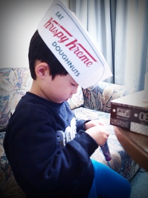 小乖一靠近那個店員叔叔馬上折了個帽子給小乖~
