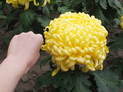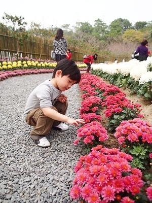 推著推車的我...經過這一片友好多超大超肥的菊花園時..