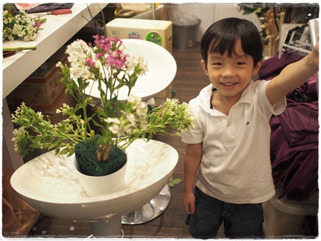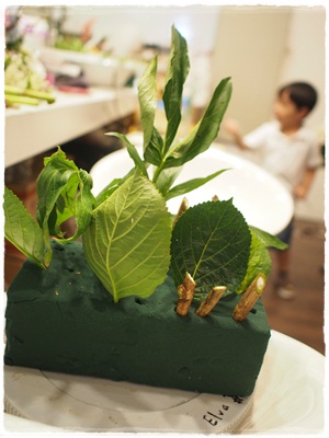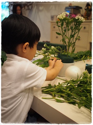 很豪邁的給了乖乖一把花兒~ 很多葉子~ 花器~ 跟泡好的海綿